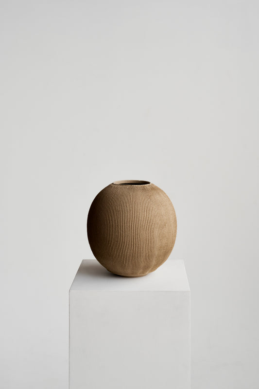 The Dune Collection draws inspiration from the California desert landscape. Textural grooves on the outside of the vessel are evocative of ripples in sand dunes, while the bulbous forms are reminiscent of desert rock formations.